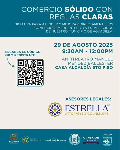 Desde el programa RESPOND de Friends of Puerto Rico nos complace unirnos al Simposio "Comercio sólido, con reglas claras", una valiosa iniciativa del Municipio de Aguadilla para apoyar y fortalecer a nuestros comerciantes locales. Será una oportunidad para conectar, escuchar y seguir trabajando juntos por el crecimiento de nuestra comunidad.